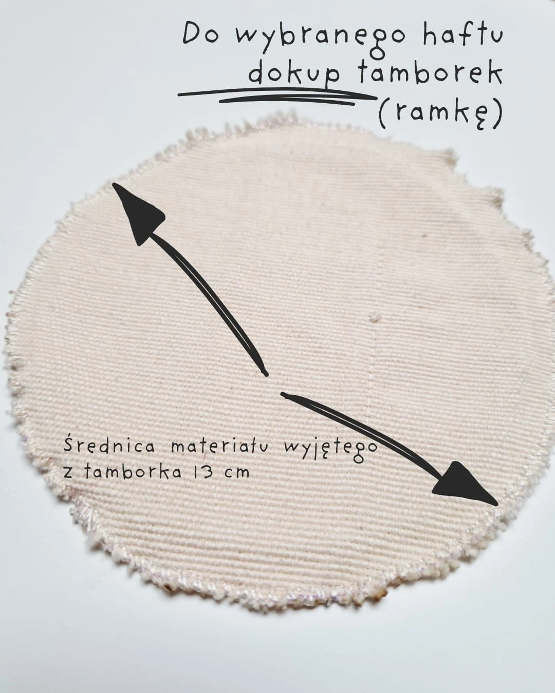 Haft maszynowy na grubej tkaninie bawełnianej, naturalnej i niebarwionej. Na krawędziach materiał może się nico strzępić. Nie martw się - jest zabezpieczony (obrębiony na maszynie).