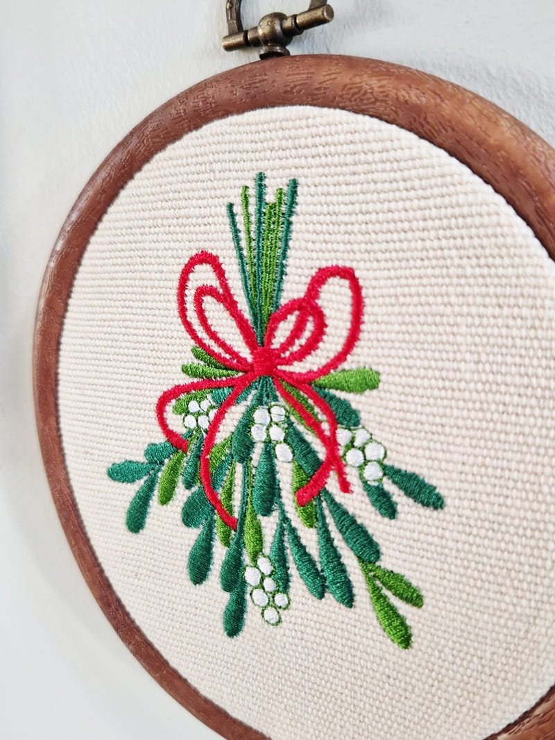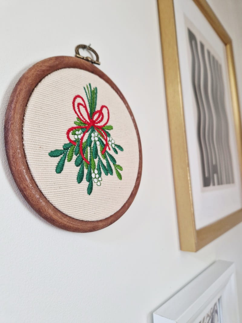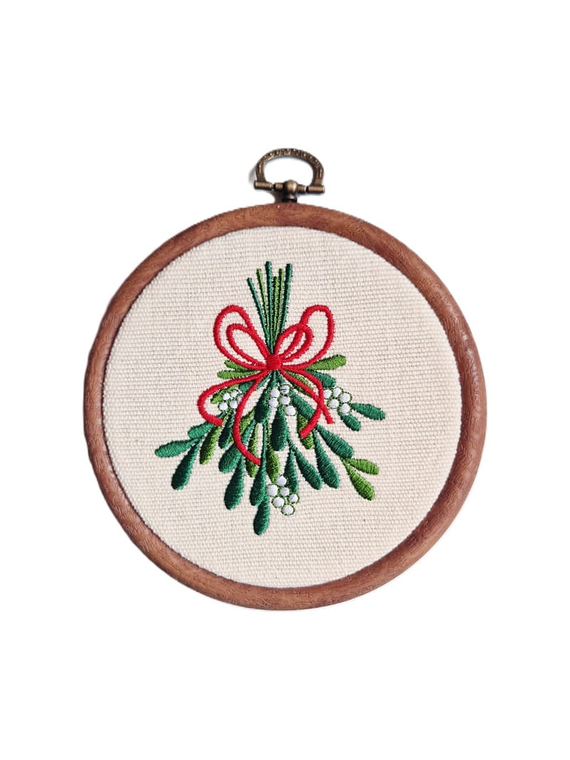 Do haftowanej ozdoby dokup tamborek (ramkę). Bardzo łatwo go otworzysz, aby wymienić jemiołę na inny haft.