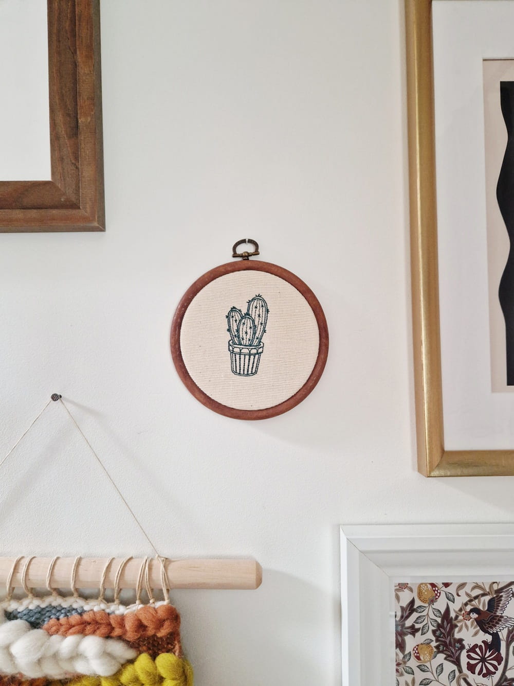 Do haftowanej ozdoby dokup tamborek (ramkę). Bardzo łatwo go otworzysz, aby wymienić kaktus na inny haft.