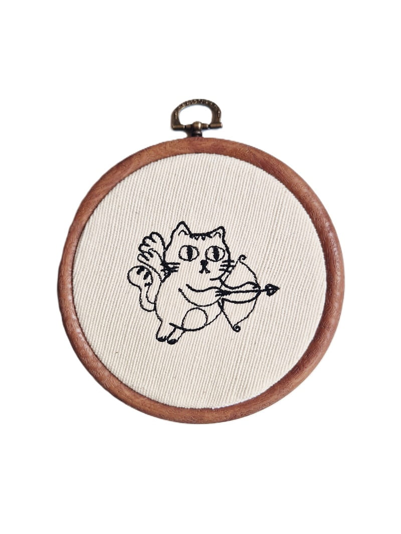 Do haftowanej ozdoby dokup tamborek (ramkę). Bardzo łatwo go otworzysz, aby wymienić kotka na inny haft.