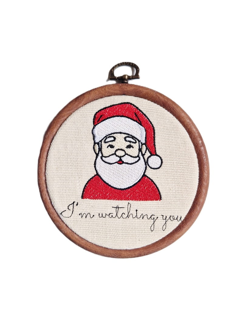 Do haftowanej ozdoby dokup tamborek (ramkę). Bardzo łatwo go otworzysz, aby wymienić Mikołaja na inny haft.