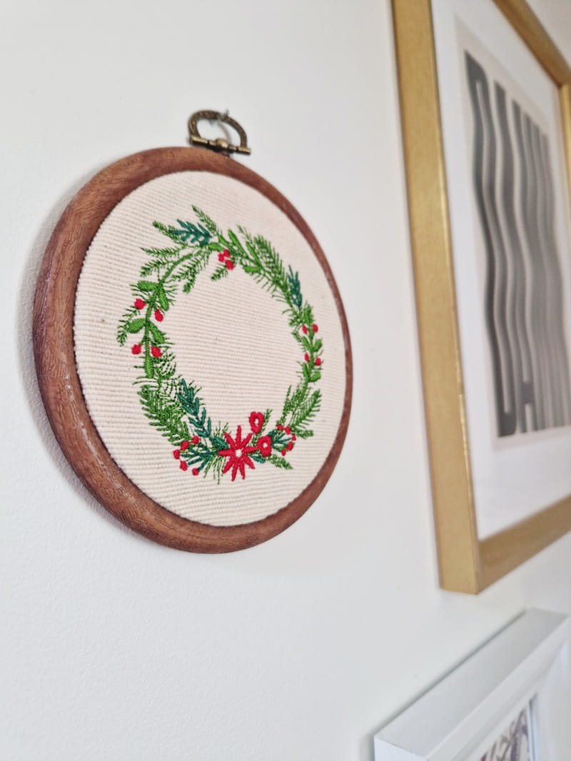 Nie masz miejsca na klasyczny świąteczny wieniec? Możesz go zastąpić niedużym, uroczym haftem :)