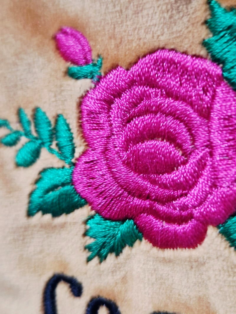 - Haft maszynowy na materiale welurowym, z tyłu materiał bawełniany (mają certfikat Oeko-tex)