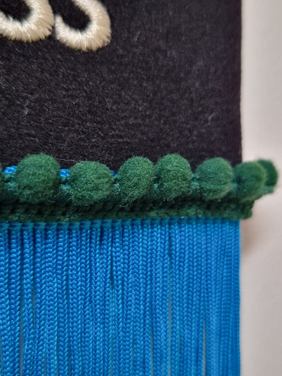 - Wymiary proporczyka: szerokość 13 cm, długość ok. 35 cm (długość razem z rzemykiem; możesz regulować długość rzemyka)