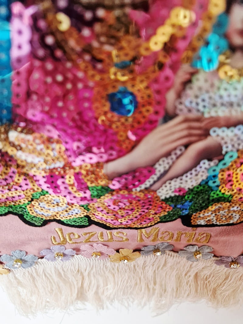 Mam nadzieję, że proporczyk nie obrazi niczyich uczuć religijnych. Haftowany podpis jest popularnym potocznym określeniem, a w tym kontekście dodatkowo opisuje, co przedstawia aplikacja.