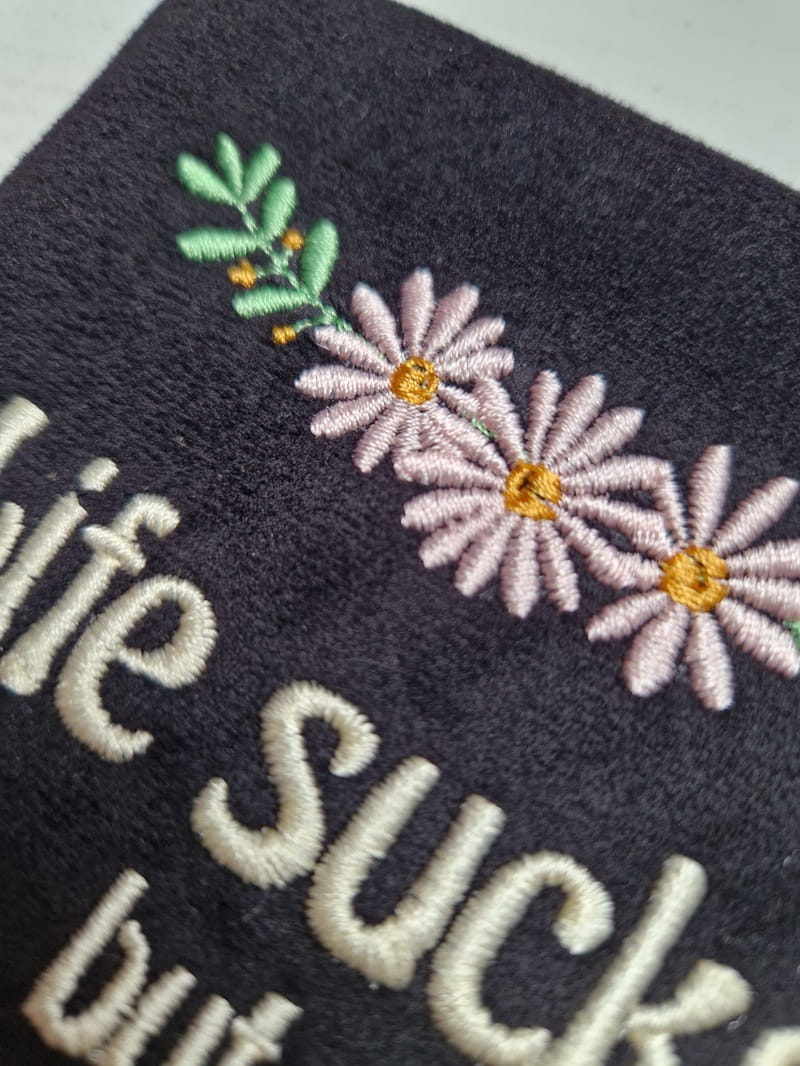 - Haft maszynowy na materiale welurowym, z tyłu materiał bawełniany (mają certfikat Oeko-tex)