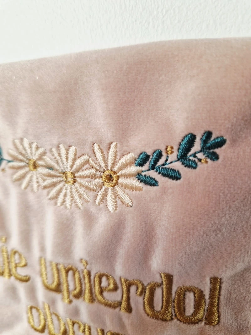Haft maszynowy na materiale welurowym, z tyłu materiał bawełniany (mają certfikat Oeko-tex)