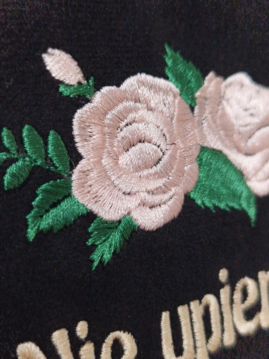 Haft maszynowy na materiale welurowym, z tyłu materiał bawełniany (mają certfikat Oeko-tex)