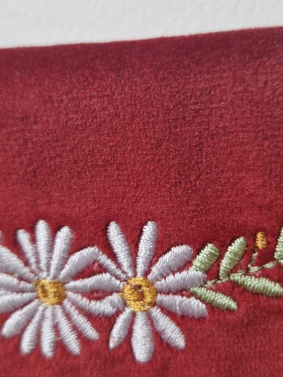 Haft maszynowy na materiale welurowym, z tyłu materiał bawełniany (mają certfikat Oeko-tex)