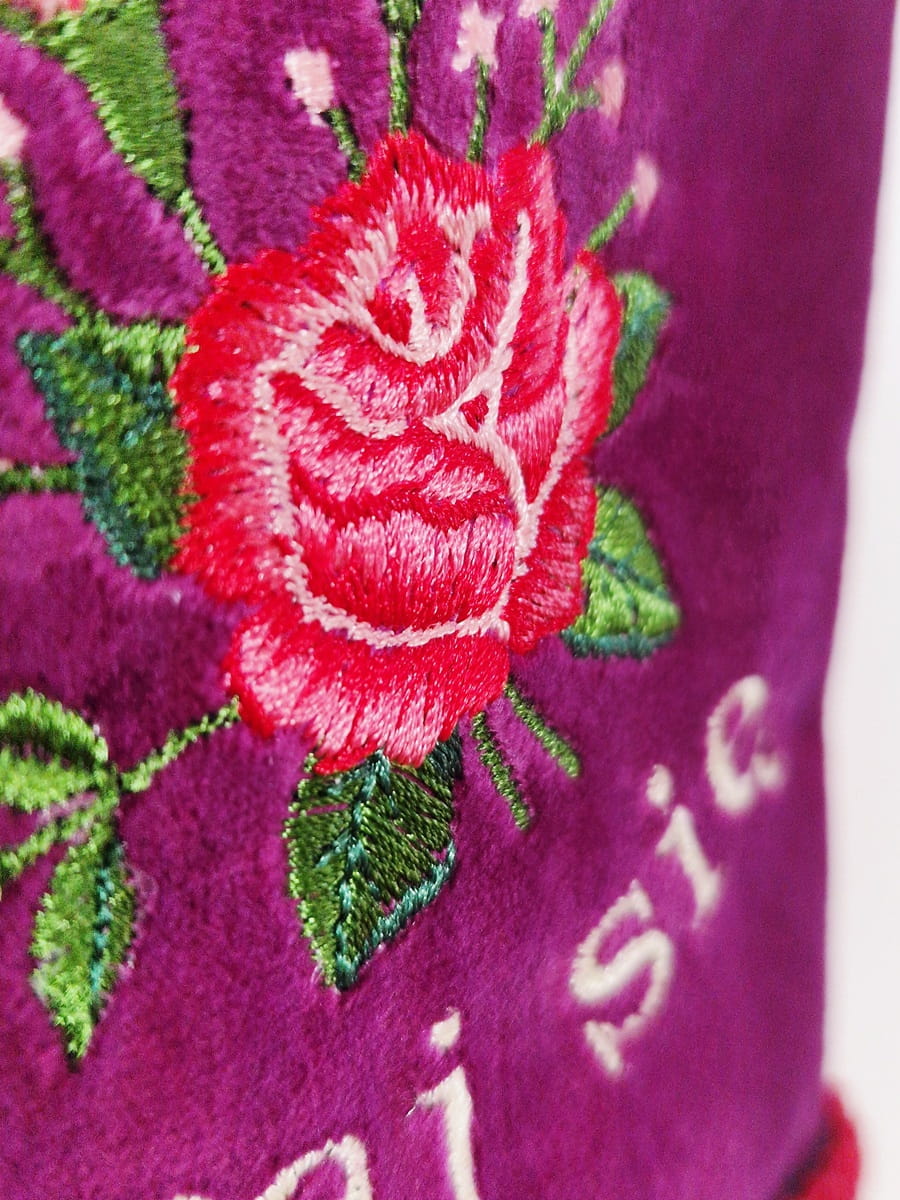 - Haft maszynowy na materiale welurowym, z tyłu materiał bawełniany (mają certfikat Oeko-tex)