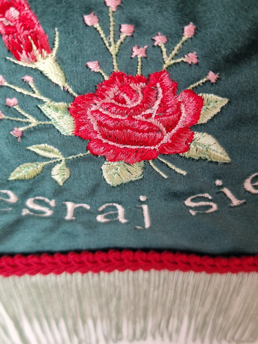 - Haft maszynowy na materiale welurowym, z tyłu materiał bawełniany (mają certfikat Oeko-tex)