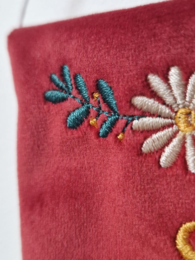 - Haft maszynowy na materiale welurowym, z tyłu materiał bawełniany (mają certfikat Oeko-tex)