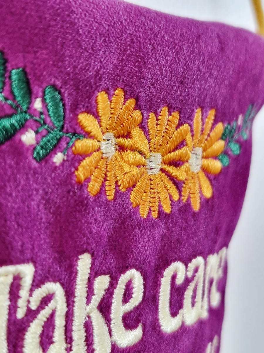 - Haft maszynowy na materiale welurowym, z tyłu materiał bawełniany (mają certfikat Oeko-tex)