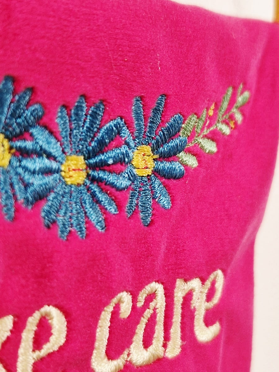 - Haft maszynowy na materiale welurowym, z tyłu materiał bawełniany (mają certfikat Oeko-tex)