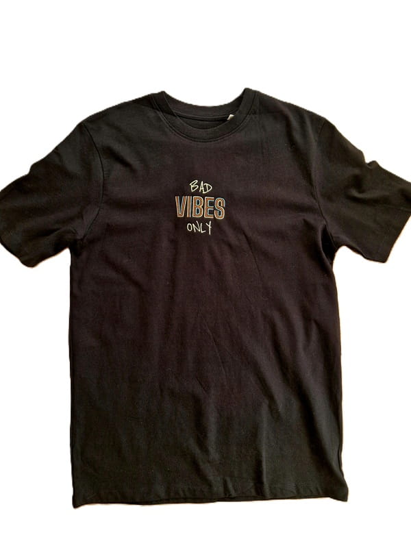 Producentem koszulek, na których haftuję, jest brytyjska firma Mantis World, tworząca wysokiej jakości ubrania z troską o naturę. Na wszytej metce zobaczysz m.in., jak zostało ograniczone zużycie wody przy produkcji konkretnego T-shirtu.