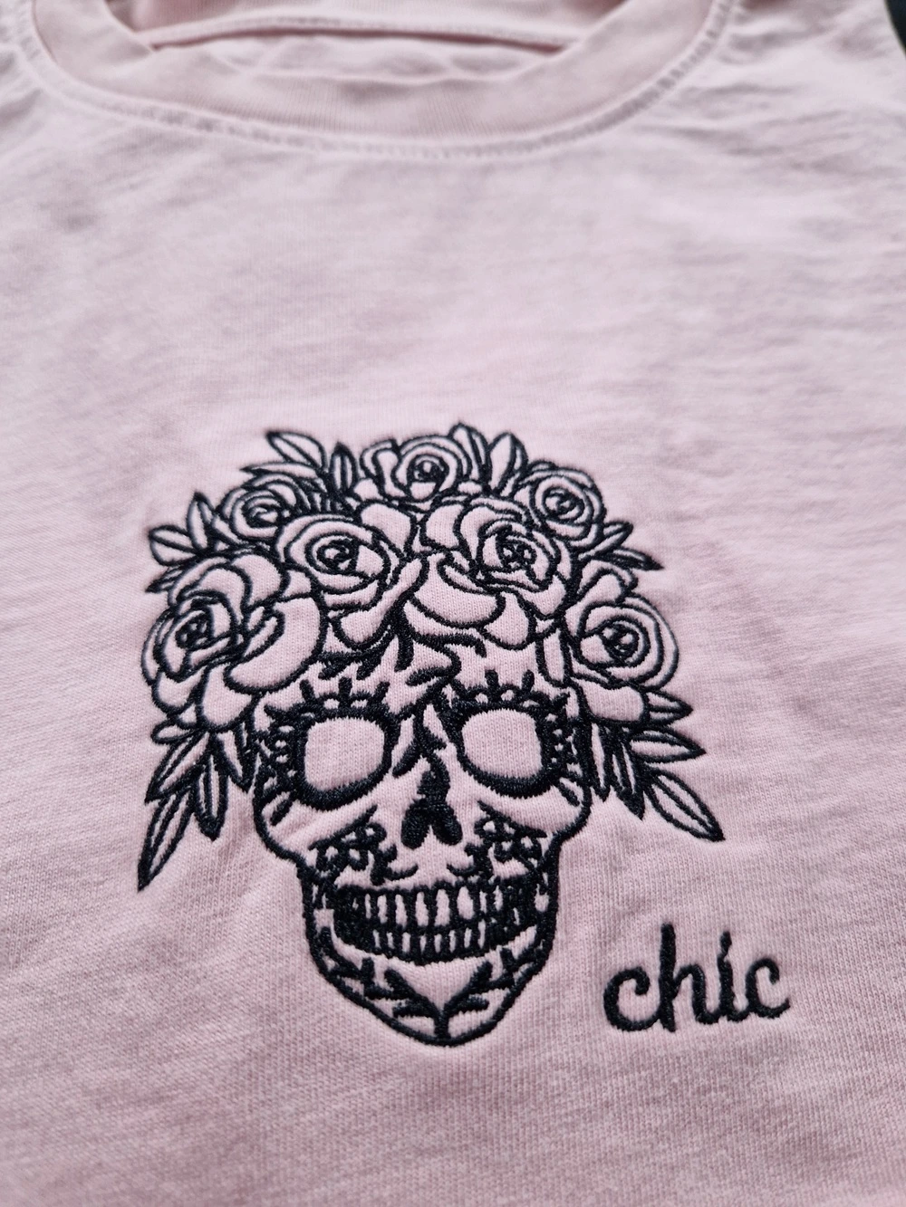 T-shirt z haftem - CZASZKA CHIC