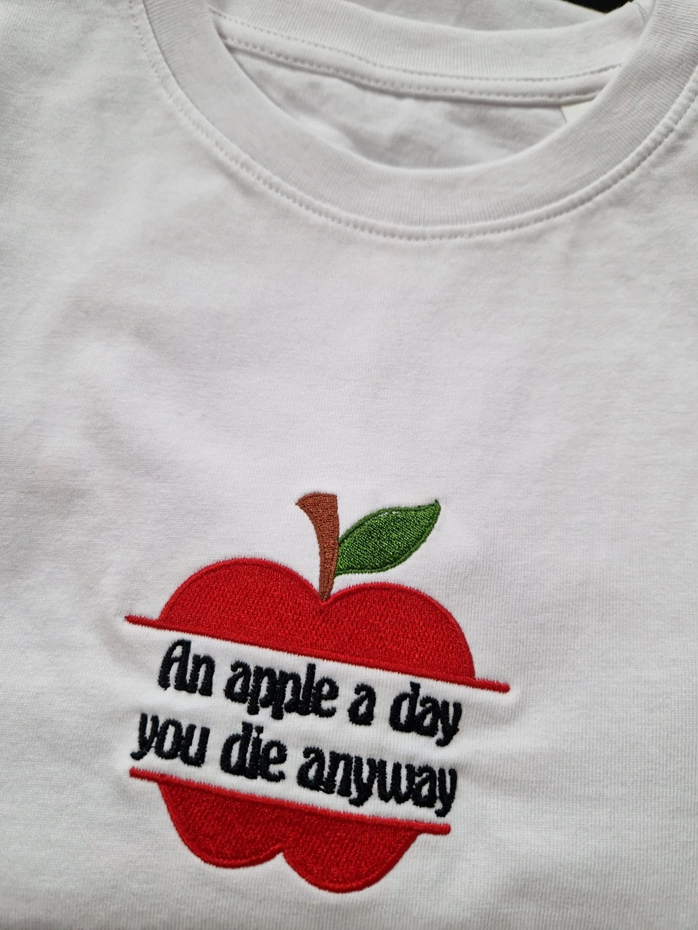 T-shirt z haftem biały - JABŁUSZKO, rozmiar XL